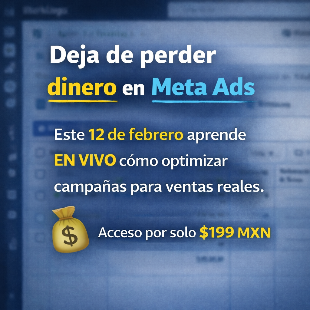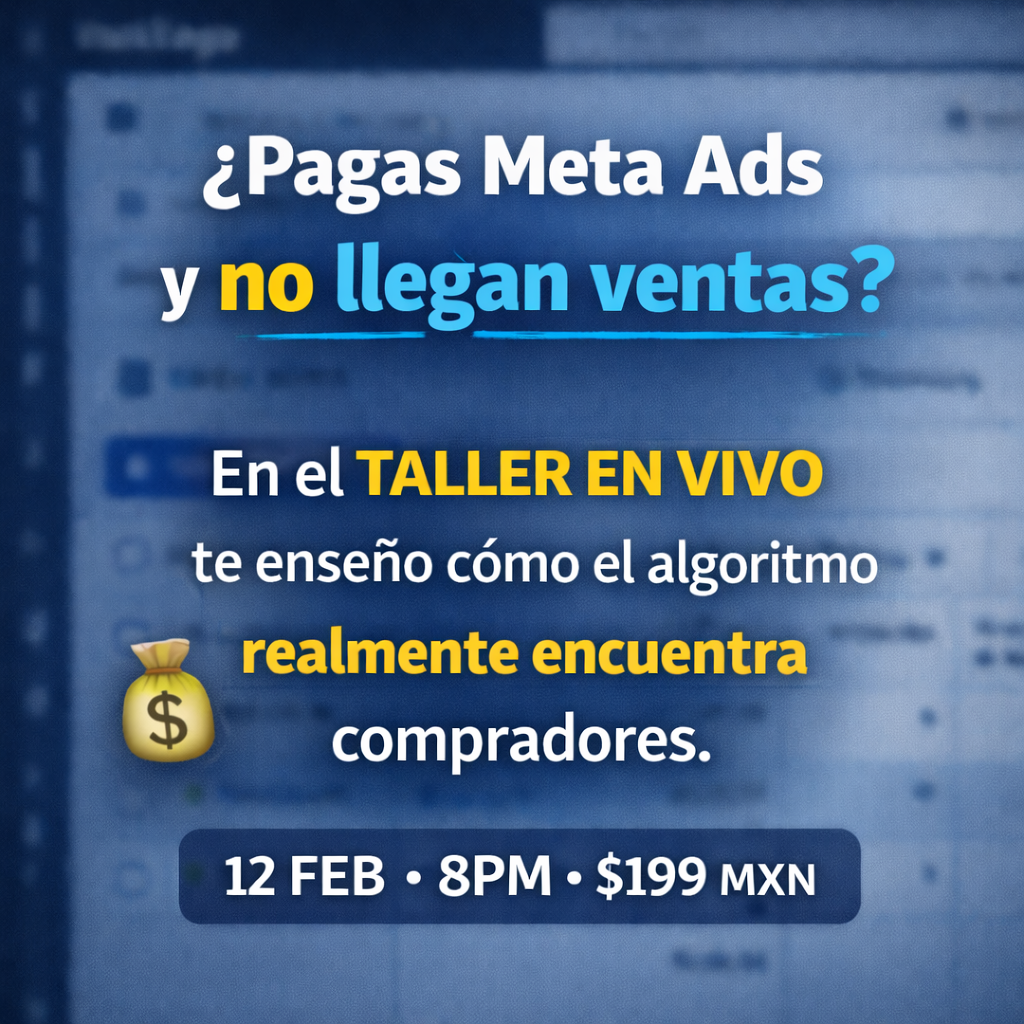 Taller práctico donde verás exactamente qué está rompiendo tus campañas y cómo corregirlo para vender sin quemar presupuesto.